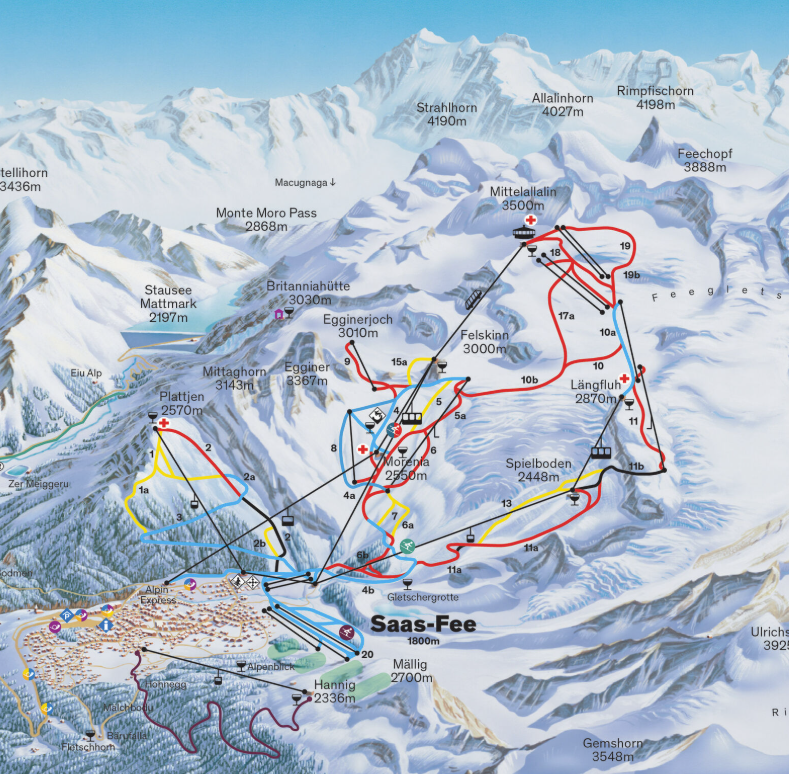 Il n’y a pas forcément de cours organisés, c’est vraiment du ski ensemble, quelques tips et conseils et surtout… du plaisir ! Il est bien de prendre des habits chauds, car Saas-Fee est vraiment haut en altitude et froid. Si vous avez un sac à souliers pour mettre les souliers en haut, c’est bien, sinon ce n’est pas grave.